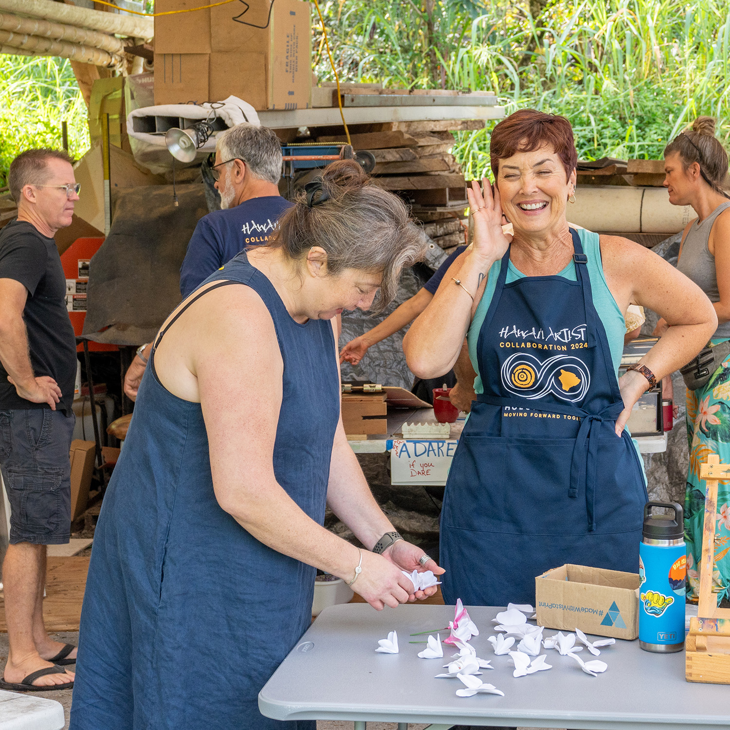 Collab! is our flagship event, held each fall in Kailua-Kona Hawaii. For more than a decade master artists from throughout Hawai‘i, and around the world come together annually to create one of a kind artwork throughout the five day Hawai‘i Artist Collaboration. The event brings together as many as 40 artists from around the world, representing diverse mediums to work together and create unique and impactful art.